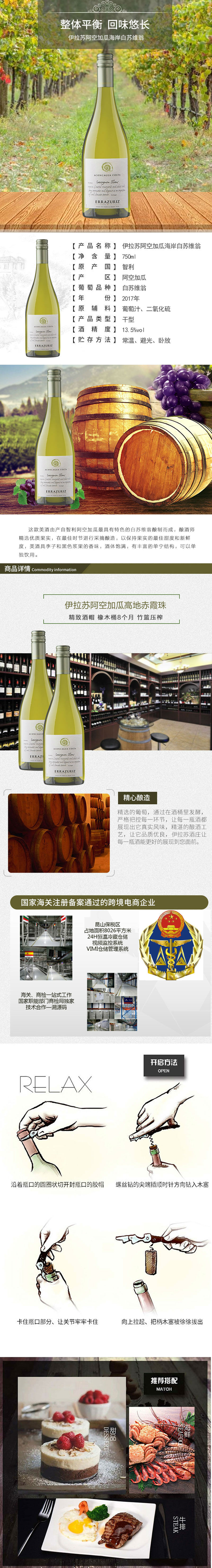 商品名称:伊拉苏阿空加瓜海岸白苏维翁