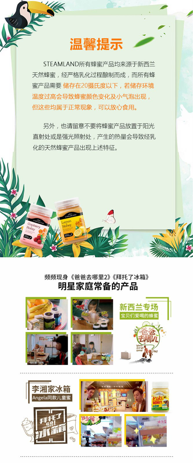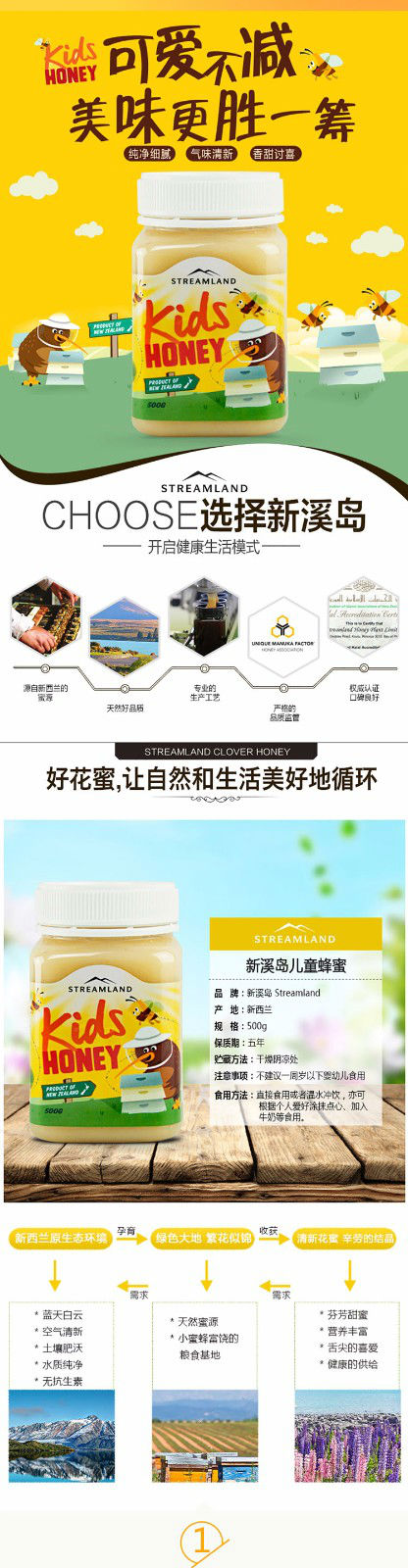 商品名称:新西兰Streamland儿童蜂蜜500g