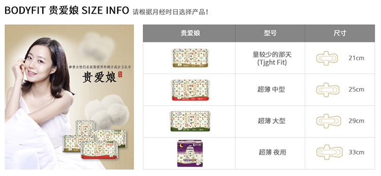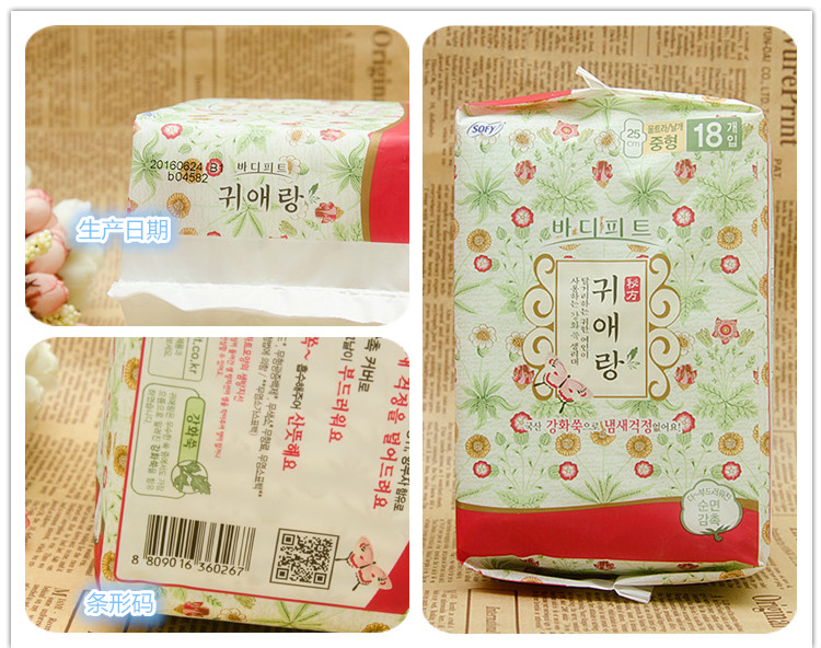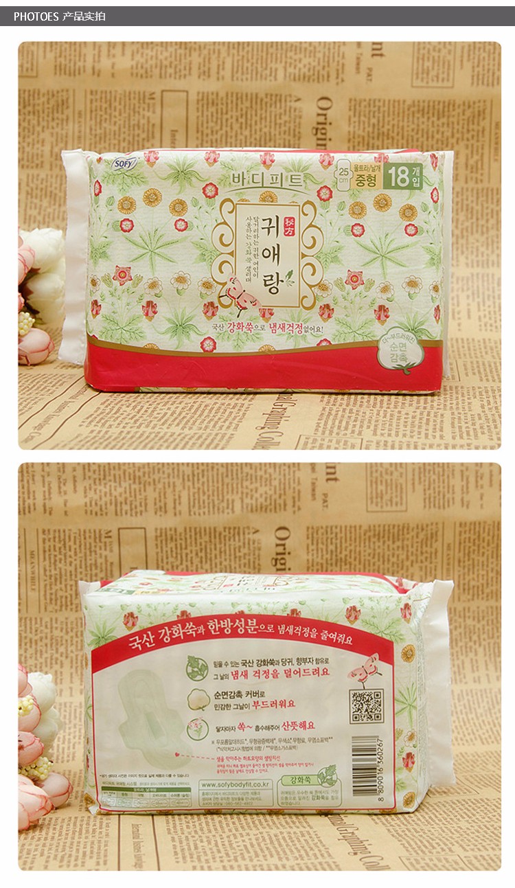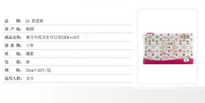 商品名称:韩国LG贵爱娘sofy卫生巾 中草药卫生巾中型 25cm18片包