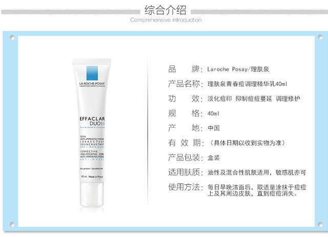 商品名称:LA ROCHE-POSAY理肤泉青春痘调理精华乳40ml