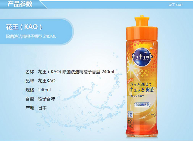 商品名称:日本花王橙子香果蔬清洁剂240ml两件装