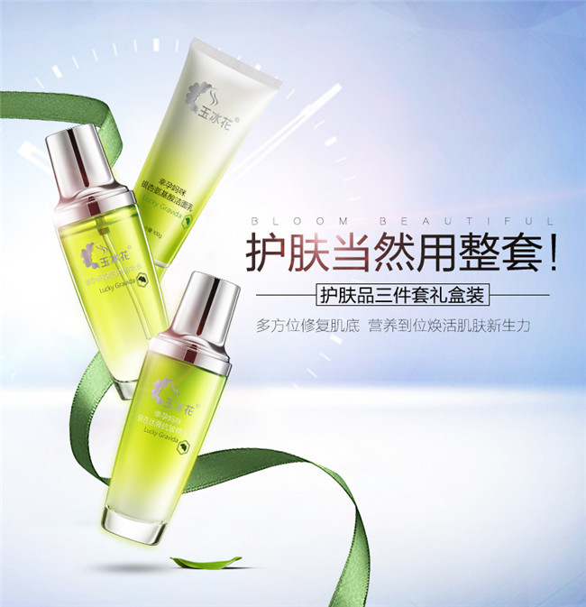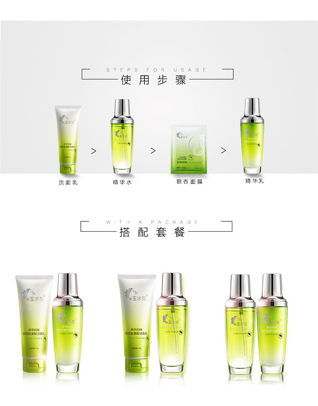 商品名称:玉冰花-银杏护肤三部曲套盒 洁面乳100g精华水100ml精华乳100ml